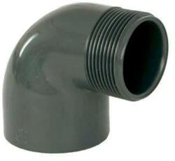 PVC idom - könyök 90°, csatlakozás - ragasztás x külső menet, szín szürke.