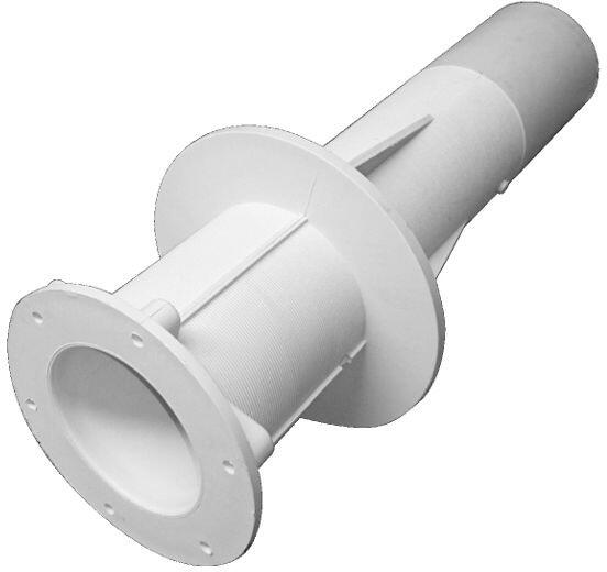 Beton medencéhez használható fali átvezetés 50-es PVC nyomócsőhöz. A befúvót ragasztással lehet az átveztőben rögzíteni.