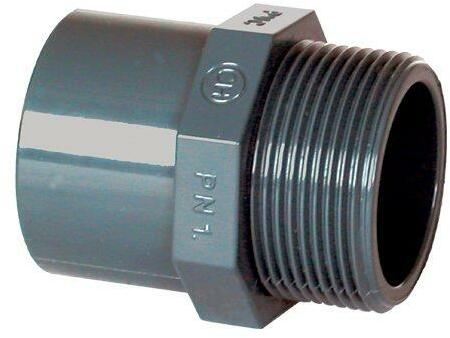 PVC Karmantyú, csatlakozás - ragasztás x külső menet, szín szürke, DN50 (belső átmérő), D63 (külső átmérő)