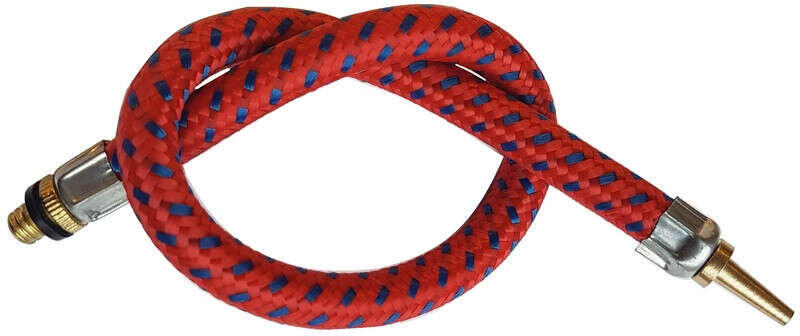 Pumpatömlő hagyományos kerékpár pumpához, DV szelep Réz csatlakozók, 25 cm hosszú gumi tömlő, textil fonat
