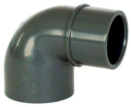PVC könyök 90 °, csatlakozás - ragasztás x ragasztás, szín szürke, DN63 (belső átmérő) x D63 (külső átmérő)