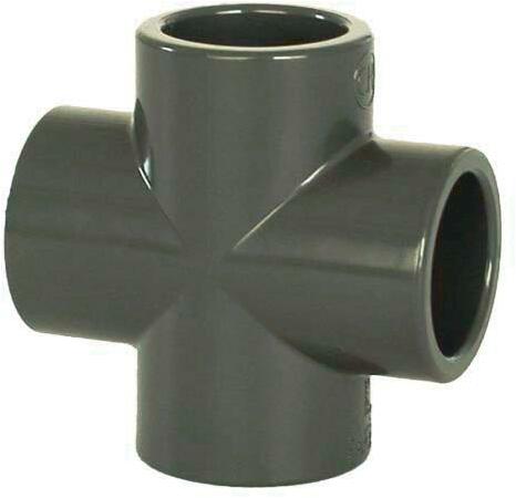 PVC kereszt 50 mm, csatlakozás - ragasztás x ragasztás, szín szürke, DN40 (belső átmérő), D52 (külső átmérő)
