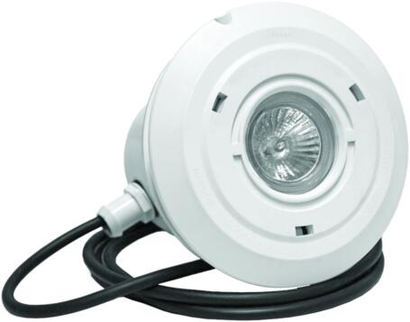 Reflektor MINI2008 "Mini 2008" víz alatti világítás fóliás medencéhez. Hőálló (ABS) műanyag test, fej fehér műanyagból, alsó kivezetéssel. Minőségi kialakítása kiváló fényerőt és élettartamot biztosít. 2 méteres kábellel kapható. 6 W teljesítményű LED izzóval.