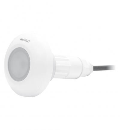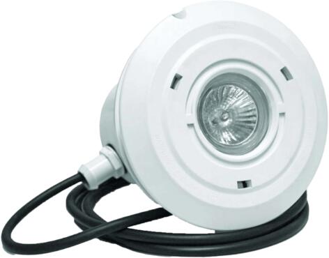 Reflektor MINI2008 "Mini 2008" víz alatti világítás fóliás medencéhez, Hőálló (ABS) műanyag test, fej fehér műanyagból, alsó kivezetéssel. Minőségi kialakítása kiváló fényerőt és élettartamot biztosít. 2 méteres kábellel kapható. 50 W / 12 V halogén izzóval.
