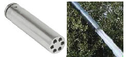 Rozsdamentes kerek 6 lyukas dögönyöző fúvókafej. Anyagminőség: AISI 316 Az RFL 013-as dögönyöző fúvókája.