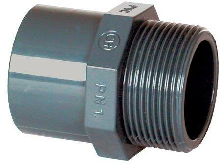 PVC Karmantyú, csatlakozás - ragasztás x külső menet, szín szürke, DN63 (belső átmérő), D75 (külső átmérő)