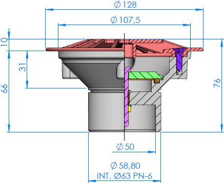 Recirkulációs és szívó fúvóka állítható áramlással. Fehér vagy színes ABS műanyagból készült. A rács rögzítése 4 rozsdamentes acél önmetsző csavarral.
