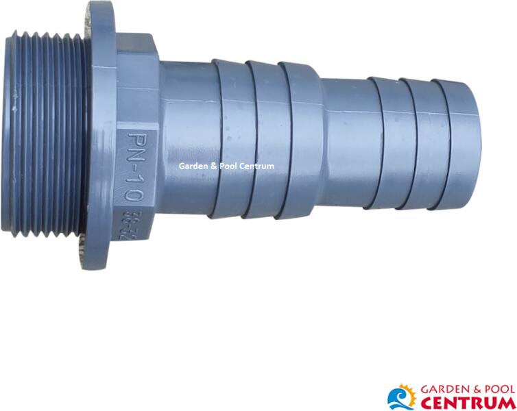 A PVC tömlőtüske a medenceelosztó rendszer vagy a szivattyú csatlakoztatására szolgál egy 32 vagy 38 mm-es rugalmas tömlővel.