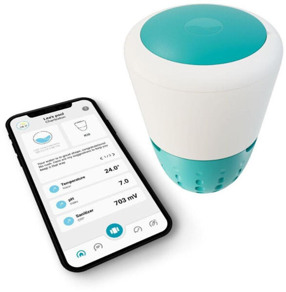 Egyszerű vízminőség-ellenőrzés intelligens monitorral 24/7 méri a pH-t, az ORP-t és a víz hőmérsékletét Előre látja a változásokat és karbantartási javaslatokat tesz Hosszú élettartamú akkumulátor, szezononként egyszer szükséges újratölteni Kivehető érzékelők tartós burkolattal védettek Kompakt kialakítás, egyszerű telepítés Különböző típusú medencékke