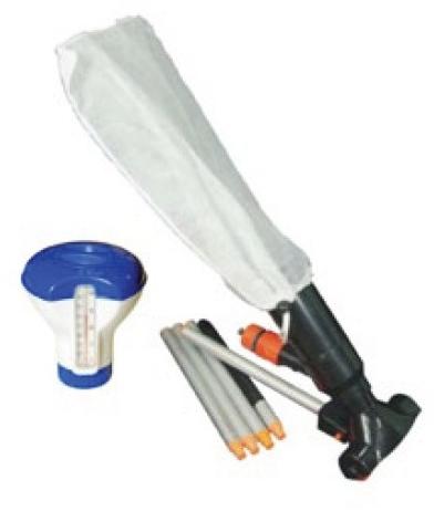 Gyártó: Pontaqua Modell: Medence porszívó szett úszó vegyszeradagoló hőmérővel (FFH 050) Tulajdonságok: Kis kerti medencék egyszerű takarító eszköze. A fej egyik csonkjára csatlakoztatott locsolótömlőn keresztül beáramló víz örvényt kelt, és a medence alján összegyűlt szennyeződést besodorja a másik csonkra kötött zsákba A lassan oldódó vegyszertablettákat be