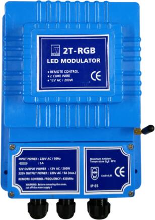 LED vezérlő távirányítóval Vízalatti LED fényforrások vezérlésére, nagy távolságú távirányítóval. Fénymodulátor RGB és egyszínű LED fényforrásokhoz. 50 V-os bemenettel, 12 V-os kimenettel és egy 4 gombos, antennás (rádiós) távirányítóval. Analóg transzformátor, párhuzamosan csatlakoztatható további hagyományos transzformátor(ok)ral további extra teljesítm