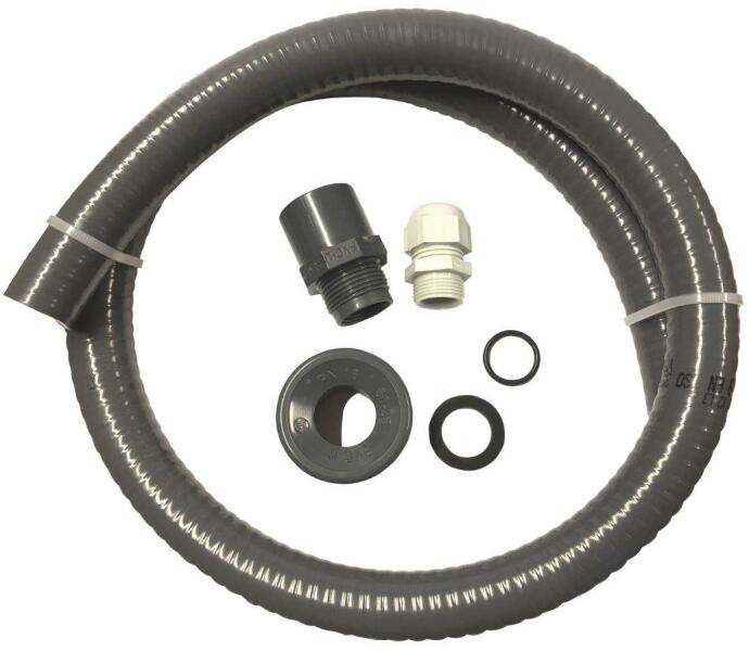 A csatlakozó tömlő feladata, hogy segítségével a medence lámpa kábelét át tudjuk vezetni a medence betonfalán.