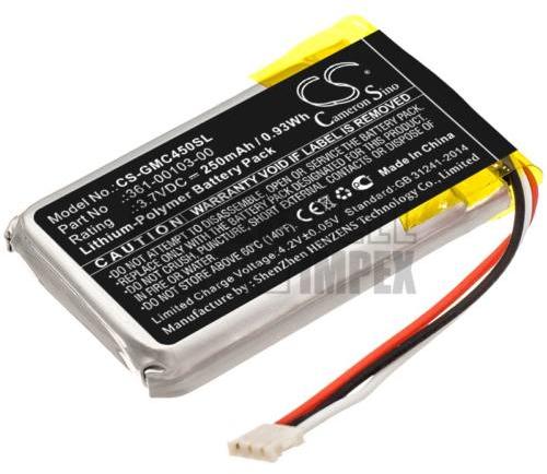 Garmin Dash Cam 45 DashCam 45 series 361-00103-00 3.7V Li-Polymer 250mAh / 0.93Wh GPS akkumulátor utángyártott. Kompatibilis készülékek: Dash Cam 45 DashCam 45 Kompatibilis part number : 361-00103-00 Tulajdonságok : Feszültség: 3.7V Kapacitás: 250mAh / 0.93Wh A csomag tartalma: 1db akkumulátor, zacskós csomagolás