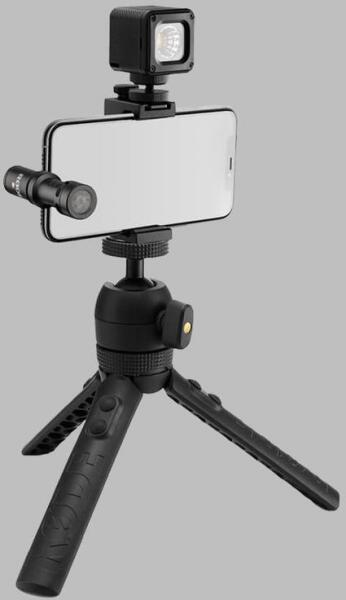 RØDE Vlogger Kit iOS komplett mobil videós szett Lightning csatlakozós iPhone telefonokhoz, VideoMic ME-L mikrofonnal, SmartGrip vakupapucs aljzattal ellátott telefontartóval, Tripod 2 állvánnyal, MicroLED lámpával, WS9 szőrös szélfogóval, szűrő szettel és USB-C kábellel. Ajánljuk YouTubereknek, Vloggereknek és bárkinek, aki mobiltelefonnal készít videókat. A RØDE Vlogger K