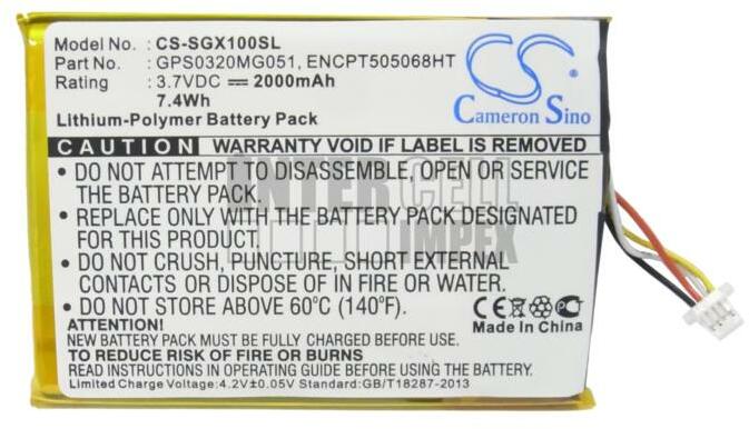 SkyGolf SkyCaddie Breeze SGX SGXW SkyCaddie SGX SkyCaddie SGX GPS Rangefinder SkyCaddie SGXw SGX-W SGX-W Rangefinder series ENCPT505068HT GPS0320MG051 3.7V 2000mAh / 7.40Wh Li-Polymer GPS akkumulátor utángyártott. Kompatibilis készülékek: SkyCaddie Breeze SGX SGXW SkyCaddie SGX SkyCaddie SGX GPS Rangefinder SkyCaddie SGXw SGX-W SGX-W Rangefinder Kompatibilis part number : ENCPT505068HT GPS03