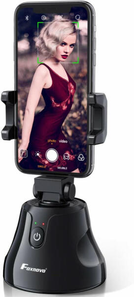Foxnovo hordozható szelfibot, 360 ° -os elforgatással, tárgy- és arckövetéshez. Jellemzők: Szín: Fekete Kompatibilis eszközök: kamera, mobiltelefon A termék méretei HxSzxM: 9,3 x 9,3 x 16,5 hüvelyk