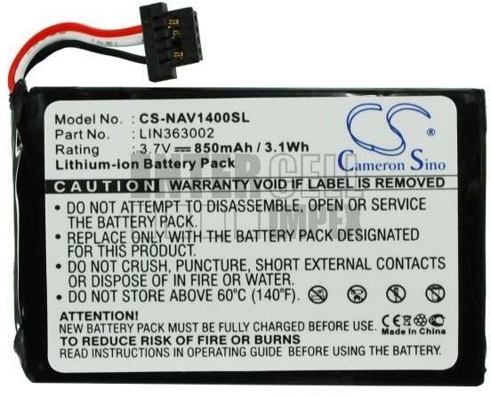 Navigon 1400 1410 series LIN363002 3.7V Li-ion 850mAh GPS akkumulátor utángyártott. Kompatibilis készülékek: 1400 1410 Kompatibilis part number : LIN363002 Tulajdonságok : Feszültség: 3.7V Kapacitás:850mAh A csomag tartalma: 1db akkumulátor, zacskós csomagolás