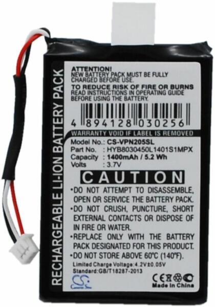 Akkumulátor Cameron Sino CS-VPN205SL Kompatibilitás: Vdo Dayton Ma3060 Vdo Dayton Pn1000 Vdo Dayton Pn2050EAN: 4894128030256 Feszültség: 3.70 V Típus: Li-Ion Kapacitás: 1400 mAh Energia: 5.18 Wh Magasság: 53 mm Szélesség: 34 mm Mélység: 8 mm Súly csomagolás nélkül: 32 g Súly csomagolással együtt: 57 g