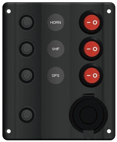Termék részletek12/32 voltos, kapcsolónként 10 amper terhelhetőségű, egyedi formavilágú, három egységes kapcsolótábla automata biztosítékkal és szivargyújtó csatlakozással. Műanyag alaplap, ledes visszajelzőkkel. A panel gyárilag nem feliratozott. Mérete: 125 x 100 mm