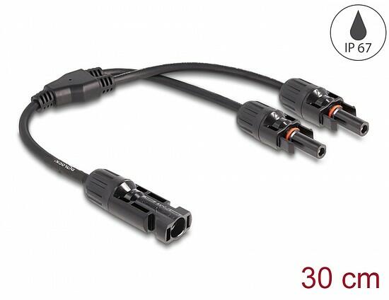 Ez a Delock DL4 napelem-elosztó kábel használható a fotovoltaikus rendszerből származó energia átvitelére. DL4 csatlakozók A DL4 csatlakozók és aljzatok bepattintható funkcióval rendelkeznek, amely elkerüli a nem kívánt megszakításokat és biztonságos csatlakozást biztosít. A csatlakozást a megfelelő szerszámmal újra meg lehet oldani. IP67 por- és vízálló A DL4 szolá