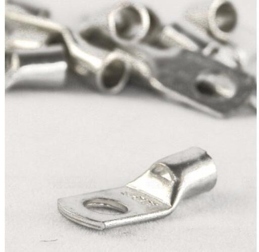 Szigeteletlen szemes saru 35mm2-es kábelhez, M10-as. (D1=10,5mm, d2=8,2mm, L= 38mm). Anyaga: Réz Felület: ónozott