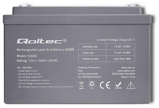 Termék részletekSzünetmentes tápegységhez, vészvilágításhoz, biztonsági rendszerekhez, napelemhez, stb. Zárt savas akkumulátor 12 V 100 Ah. Gondozás mentes. AGM kivitel. UPS-ben akár 10 év gondozásmentes működés. Töltőfeszültség: 14,4 15 V. Súly: 28,1 kg. Méret: 320 x 210 x 165 mm. Zárt savas akkumulátor 12 V 100 Ah. Gondozás mentes. AGM kivitel. UPS-ben akár 10 év gondozásmentes műk