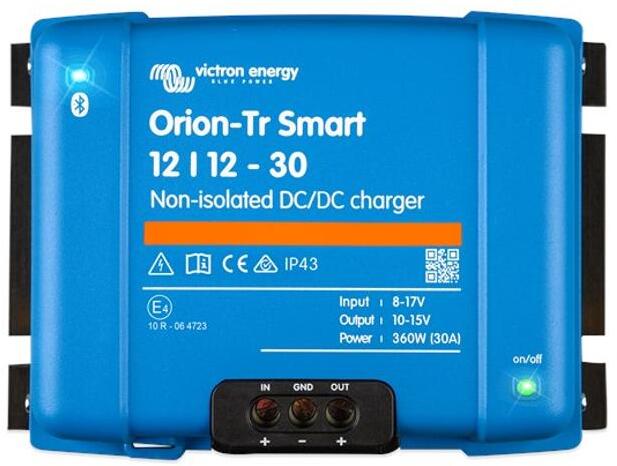 Termék részletekNem elszigetelt Orion-Tr intelligens DC-DC töltő Az Orion-Tr Smart DC-DC töltő profi egyenáramú eszközök közötti alkalmazásra készült, adaptív, 3-fokozatú töltő beépített Bluetooth funkcióval. Kettős akkumulátoros rendszerekben történő használathoz járművekben vagy hajókon, ahol a generátort és az indító akkumulátort az üzemi akkumulátor töltésére használjá