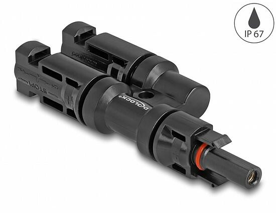 Ezek a Delock DL4 napkonnektorok használhatók a tápátvitelre, melyet fotovoltos rendszerből állították elő. DL4 csatlakozók Az DL4 plugok és csatlakozók rendelkeznek rácsippentő funkcióval, amely megelőzi a nem kívánatos megszakadásokat, elősegíti egy biztonságos kapcsolat létrejöttét. A csatlakozás megszüntethető megfelelő eszközzel. IP67 por- és vízálló Az DL4 n