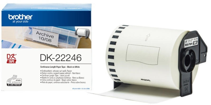**DK-22246 öntapadós folytonos papírtekercs. ** * Alapanyag: papír * Szín: fehér * Felirat: fekete * Méret: 103mm x 30,48m