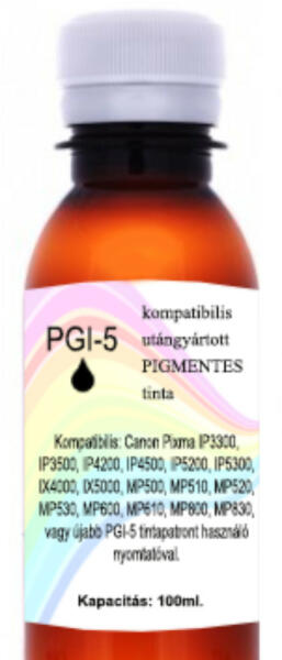 Nyomtasson gazdaságosan, otthon, minőségi UV ellenálló tintákkal! A tinták a következő színekben, 100ml kiszerelésekben kaphatók (az ár színenként értendő, a színeket a 'Kiszerelési' listából választhatja ki): CLI-8 Cyan - dye tinta vagy CLI-8 Magenta - dye tinta vagy CLI-8 Yellow - dye tinta vagy CLI-8 Black - dye tinta vagy PG-5 BK Black - igazi pigment tinta A nyomtassotth