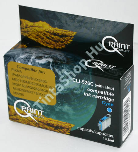 A Canon CLI-526 CY CHIP cián (kék) tintapatron, a CLI-551 kék sorozat tagja. Ez utángyártott tintapatron, nem eredeti OEM (Original Equipment Manufacturer) Canon tintapatron. Ez a termék megfelel minden szigorú minőségi előírásnak, hasonló az eredetihez. Minimális szín eltérés lehetséges az eredeti (OEM) Canon tintapatronokhoz képest, de a különbség alig észrevehető. A patr