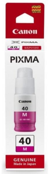 A Canon GI40 MG bíbor (piros) tinta, a GI40 sorozat tagja. Ez eredeti (OEM), bontatlan, gyári, új Canon tinta. Ez a termék megfelel minden szigorú minőségi előírásnak, kitűnő teljesítményt és minőséget biztosít az Canon nyomtatóval való használatkor. A nyomtatható oldalak száma az ISO/IEC 24711 és 24712 szabvány szerinti mérés alapján lettek meghatározva. Ettől nagyba