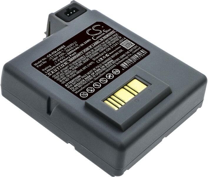 Akkumulátor Cameron Sino CS-ZQL420BX Kompatibilitás: Zebra P4t Zebra Rp4 Zebra Rp4tEAN: 4894128157069 Feszültség: 7.40 V Típus: Li-Ion Kapacitás: 6800 mAh Energia: 50.32 Wh Magasság: 101 mm Szélesség: 73 mm Mélység: 27 mm Súly csomagolás nélkül: 236 g Súly csomagolással együtt: 306 g