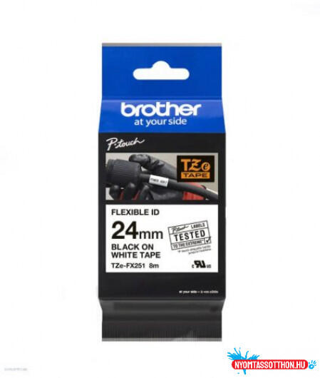 Brother TZe-FX251 24 mm széles 8m hosszú szalagkazetta **TZe -FX251 flexibilis öntapadós laminált címkeszalag tartós feliratok nyomtatásához. Kábelek jelölésére ajánlott. ** * Szalag típusa: Flexi ID laminált * Szalag szélessége: 24 mm * Szalag hossza: 8 m * Szalag színe: Fehér * Felirat színe: Fekete