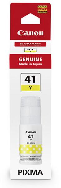 A Canon GI41 YL sárga tinta, a GI41 sorozat tagja. Ez eredeti (OEM), bontatlan, gyári, új Canon tinta. Ez a termék megfelel minden szigorú minőségi előírásnak, kitűnő teljesítményt és minőséget biztosít az Canon nyomtatóval való használatkor. A nyomtatható oldalak száma az ISO/IEC 24711 és 24712 szabvány szerinti mérés alapján lettek meghatározva. Ettől nagyban eltér