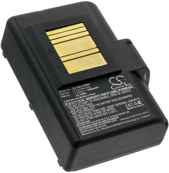 Akkumulátor Cameron Sino CS-ZQL220BH Kompatibilitás: Zebra Qln220 Zebra Qln220hc Zebra Qln320 Zebra Qln320hc Zebra Zq500 Zebra Zq510 Zebra Zq520 Zebra Zq521 Zebra Zq610 Zebra Zq610hc Zebra Zq620 Zebra Zq620hc Zebra Zr628 Zebra Zr638EAN: 4894128149781 Feszültség: 7.40 V Típus: Li-Ion Kapacitás: 3400 mAh Energia: 25.16 Wh Magasság: 73 mm Szélesség: 56 mm Mélység: 25 mm Súly csomagolás n