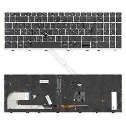 HP EliteBook 755 G5, 850 G5, 850 G6, ZBook 15u G5, ZBook 15u G6 gyári új, ezüst-fekete magyar háttérvilágításos laptop billentyűzet. (P/N: L14366-211)