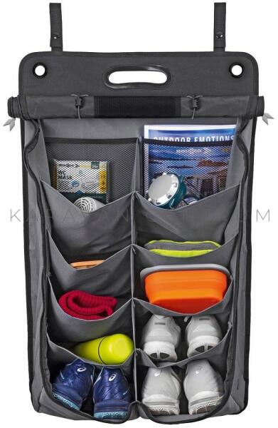 Autós tároló háttámlára - 8 részesAutós tároló háttámláraA hátsóülések háttámlájára felszerelhető rendszerező, amellyel könnyedén rendet tarthat az atuóban Nyolc különálló rekesszel rendelkezik így minden holminak megtalálja a megfeleő méretű zsebet Amikor nincs szükség a tárolóra, könnyedén összecsukható így nagyon kevés helyet foglal