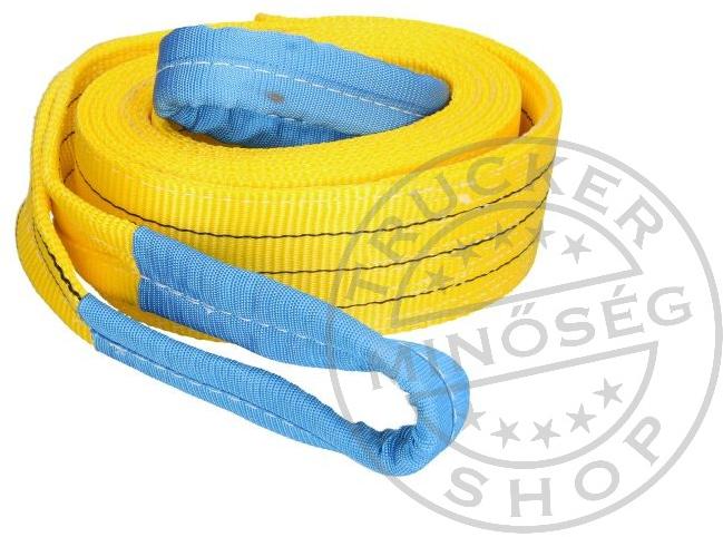 9 cm széles, kétrétegű, sárga emelő heveder. Kiválóan alkalmas dinamikus terheléshez (rángatás!), tárgyak emeléséhez. Erősített, kopásálló bevonattal ellátott végekkel. Névleges terhelhetőség: 3 tonna (Biztonsági tényező: 7:1!) Hossza: 4 méter Anyaga: szőtt poliészter Minősítés: CE, ÉMI 2018/483, MSZ EN-1492-1:2000, 91/368/EEC Figyelem! Függő teher alatt tartóz