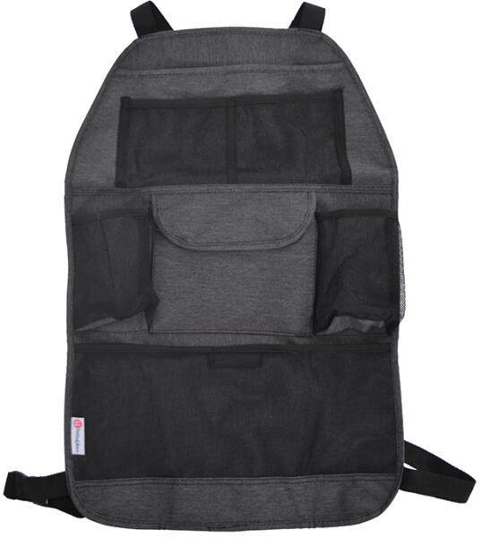 Praktikus zsebes tároló autóba durvább és merevebb anyagból. Univerzális- minden ülésre alkalmas, egyszerűen patentok és madzag segítségével rögzíthető. Poliészter mosható anyag, amely könnyen tisztítható. Mérete: 40x60 cm. Szabadalmaztatott termék.