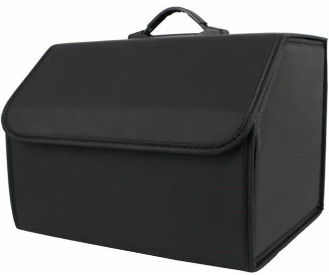 Elegáns és praktikus csomagtartó-szervező PU-bőrből és záródással, kb. 32 literes alaptérfogattal. A szervezőt kibontva szállítjuk, dekönnyen összeszerelhető, bárki pillanatok alatt elvégezheti. Az oldalfalak tépőzárral rögzíthetők. Előnye, hogy ha nem szeretné használni a szervezőt, akkor egyszerűen összecsukhatja, és tároláskor nem foglal sok helyet. A szervező