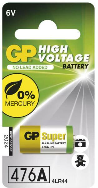 EMOS GP speciális alkáli elemek jellemzői: tartós teljesítmény stabil üzemi feszültség működési hőmérséklet: 0 °C és +45 °C között akár 3 évig is tárolható Tulajdonságok: Értékesítési csomagolás: 1 db, bliszter Méretek: 13,0 × 25,2 mm Súly: 10 g Feszültség: 6 V Kapacitás: 105 mAh (6 kohm-os terhelés esetén) Kategória/sorozat: High Voltage Kémiai összetétel