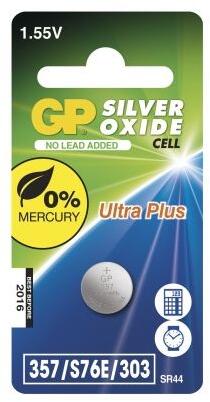 - Minőségi UTRA PLUS ezüst-oxid alapú gombelemek (gyakran "óraelemek" is). - Kifejezetten olyan termékekhez tervezték, amelyek hosszú távú tartósságot igényelnek különböző hőmérsékleteken, például órákhoz. - Tárolási idejük legfeljebb 3 év, üzemi hőmérséklete 0 °C és +45 °C között van. - GP 357F1 (SR44SW, SR44, SR1154, SB-A9, 280-08, V303, P303, 154E, 303, GP30
