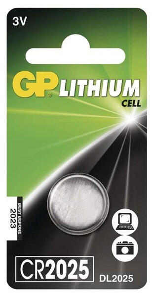 GP CR2025 lítium gombelem 1db/bliszter Tulajdonságok: kémiai összetétel: lítium feszültség: 3 V névleges kapacitás: 170 mAh (15 kohm-os terhelés esetén) méretek: 20,0 × 2,50 mm