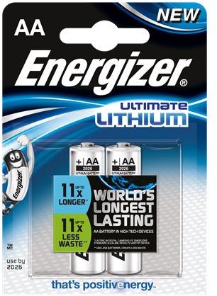 Elem, AA ceruza, 2 db, Lítium, ENERGIZER "Ultimate Lithium" - EEAA2L - AA (ceruza) elemek - Akár 11x tartósabb digitális fényképezőgépekben, * akár 11x kevesebb hulladék** Hosszú, 15 éves felhasználhatósági idő Hagyományos alkáli elemekhez viszonyítva 33%-