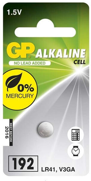 GP LR41 (192) alkáli gombelem 1db/bliszter