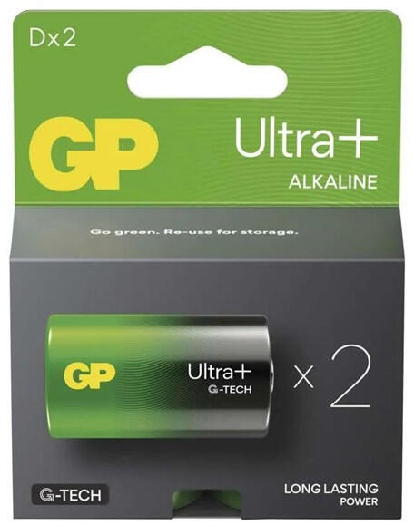 GP Ultra Plus alkáli elem LR20 (D) 2db kémiai összetétel: alkáli, kategória/sorozat: Ultra Plus Alkaline, típus: LR20 (D góliát), akkumulátor mérete: D, feszültség: 1,5 V, tölthető: nem, méretek: 34,2 × 61,5 mm, súly: 28 g, üzemi hőmérséklet: -20 °C és +54 °C, max. tárolási idő: 10 év, mennyiség szerinti ár: 1 db ára, értékesítési csomagolás: 2 db, kis papír d