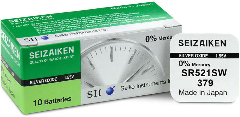 Seiziken Seiko 379 gombelem (SR521SW) : A Seiziken Seiko 379 gombelem kiváló minőségű energiaforrás, amely ideális választás órákhoz, kis méretű elektronikai eszközökhöz és egyéb készülékekhez. A kompakt kialakítás és a megbízható teljesítmény teszi alkalmasnak mindennapi használatra. Kiváló minőségű energiaforrás : Seiziken Seiko híres minőségét képviseli,