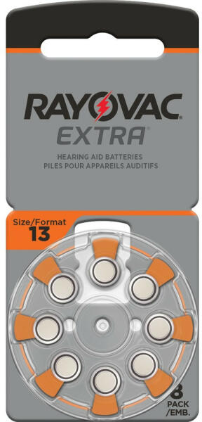 Rayovac Extra Advanced 13 típusú hallókészülék elem. A Rayovac Extra Advanced elemek a legnépszerűbb áramforrásoknak számítanak hallókészülékekhez, a piacon a legerősebbek közé sorolják őket és nagyon jó hírnévnek örvendenek a felhasználók között. A Rayovac cink-levegő elemei nagy kapacitásúak és miközben tartják alacsony súlyúkat, tolerálják a nagy áramer