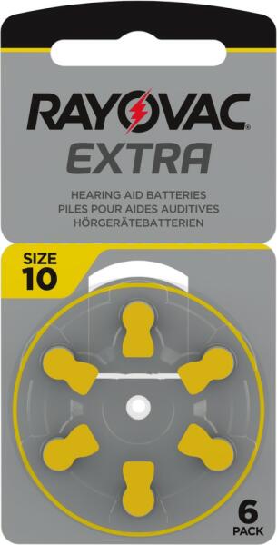 Rayovac Extra Advanced 10 típusú hallókészülék elem. A Rayovac Extra Advanced elemek a legnépszerűbb áramforrásoknak számítanak hallókészülékekhez, a piacon a legerősebbek közé sorolják őket és nagyon jó hírnévnek örvendenek a felhasználók között. A Rayovac cink-levegő elemei nagy kapacitásúak és miközben tartják alacsony súlyúkat, tolerálják a nagy áramer